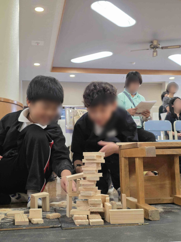 黒いシートで木への思いが膨らみましたが、椅子とのこぎと木と子どもの距離を近くしたことで、子どもの「こうしたい」というイメージが広がっていったと感じました。