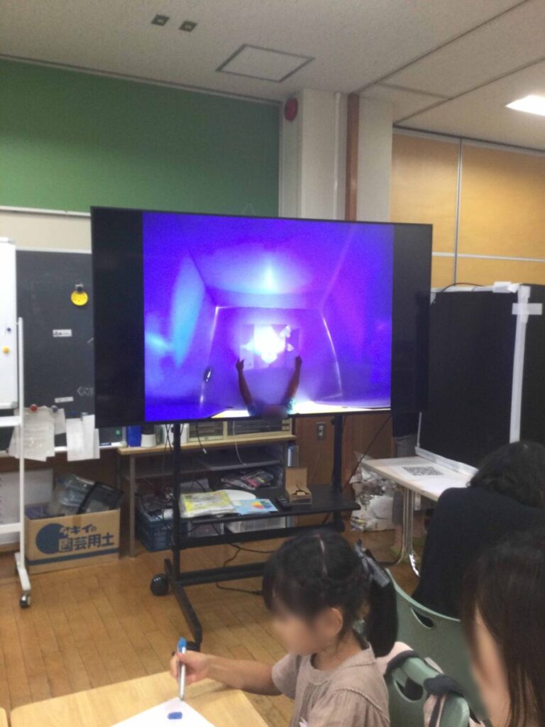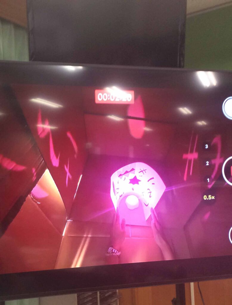 そこで、ゴープロやスマホの広角撮影を使って暗室内をリアルタイムで共有しました。暗室待ちの間も、他の人の表現を鑑賞できる仕組みです。
